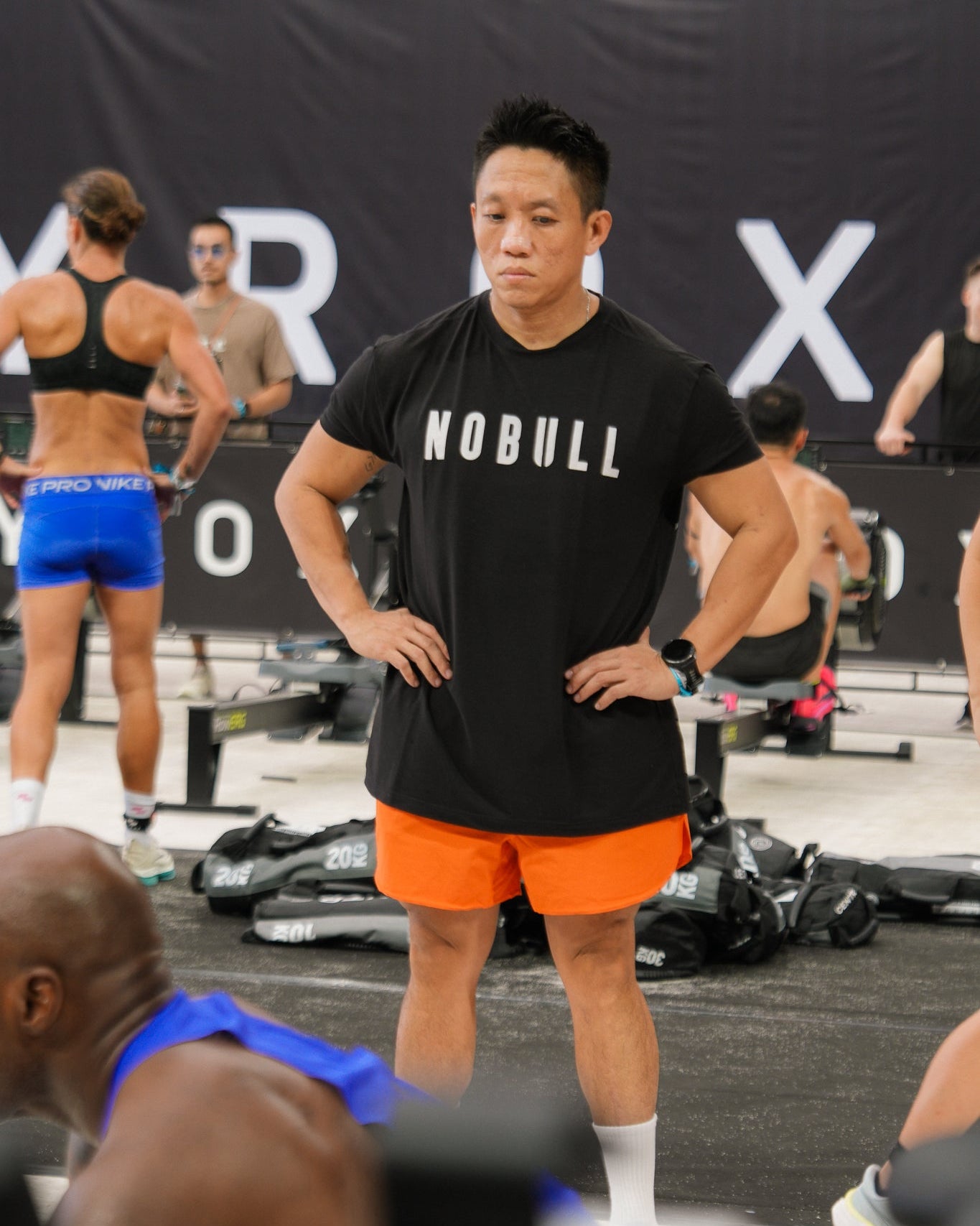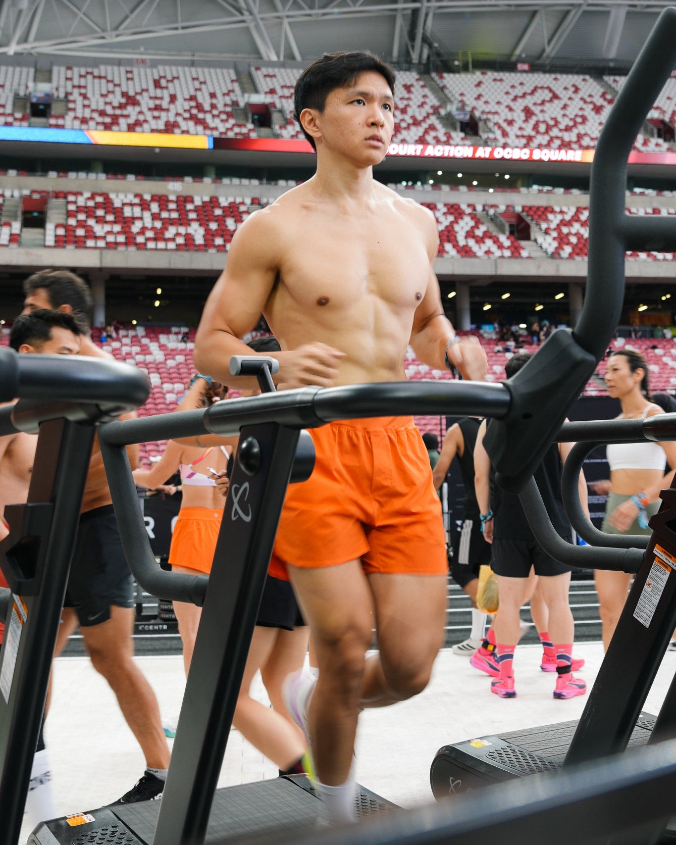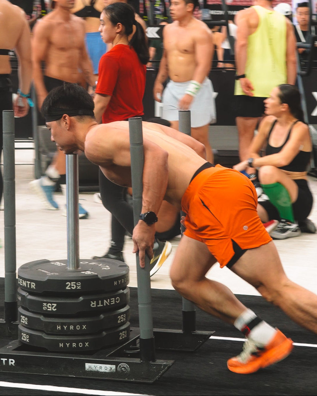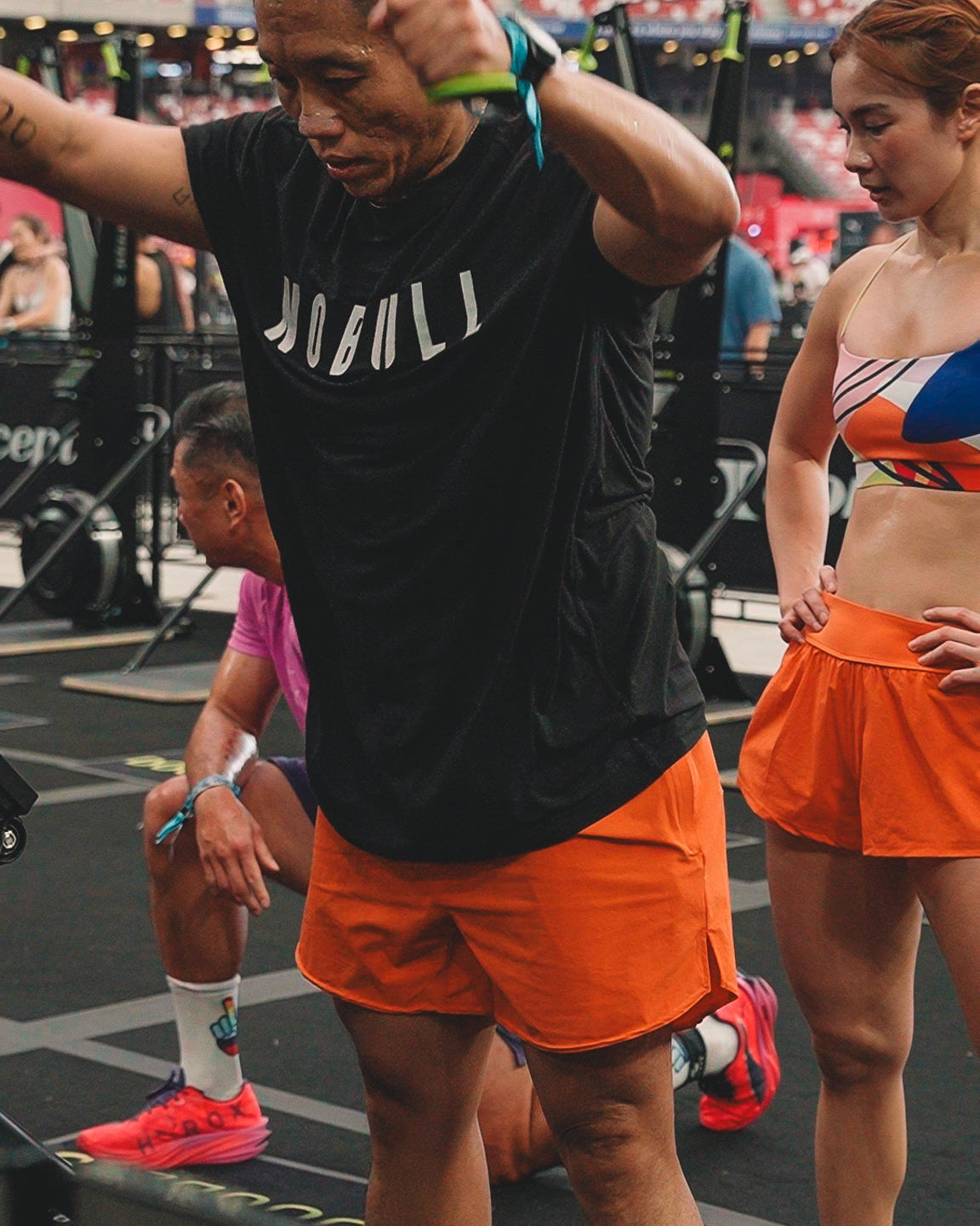 Pei is 168cm and wears Size 8, paired with Freedom 4.0 Plaid Bra in Tiger Lily Orange/Poppyfields (MD)