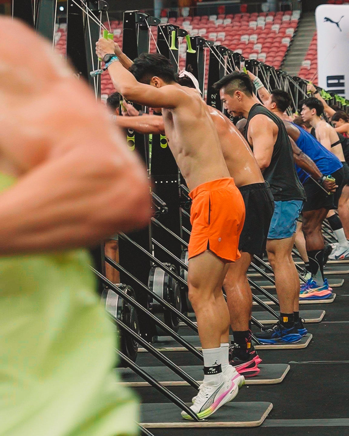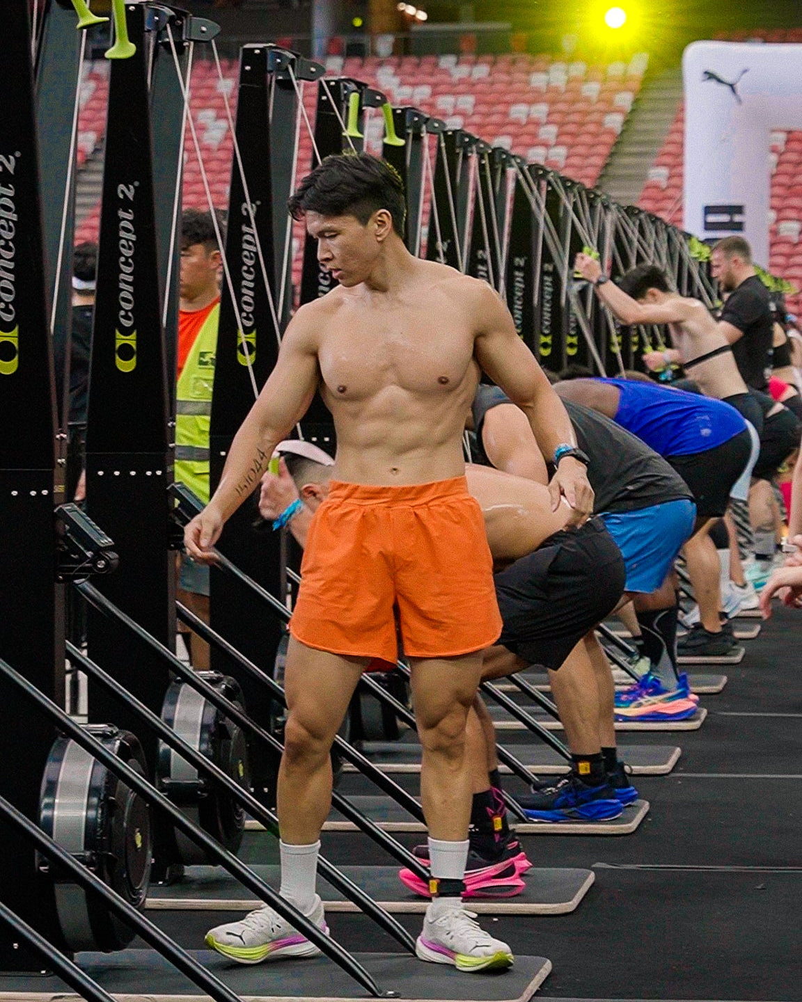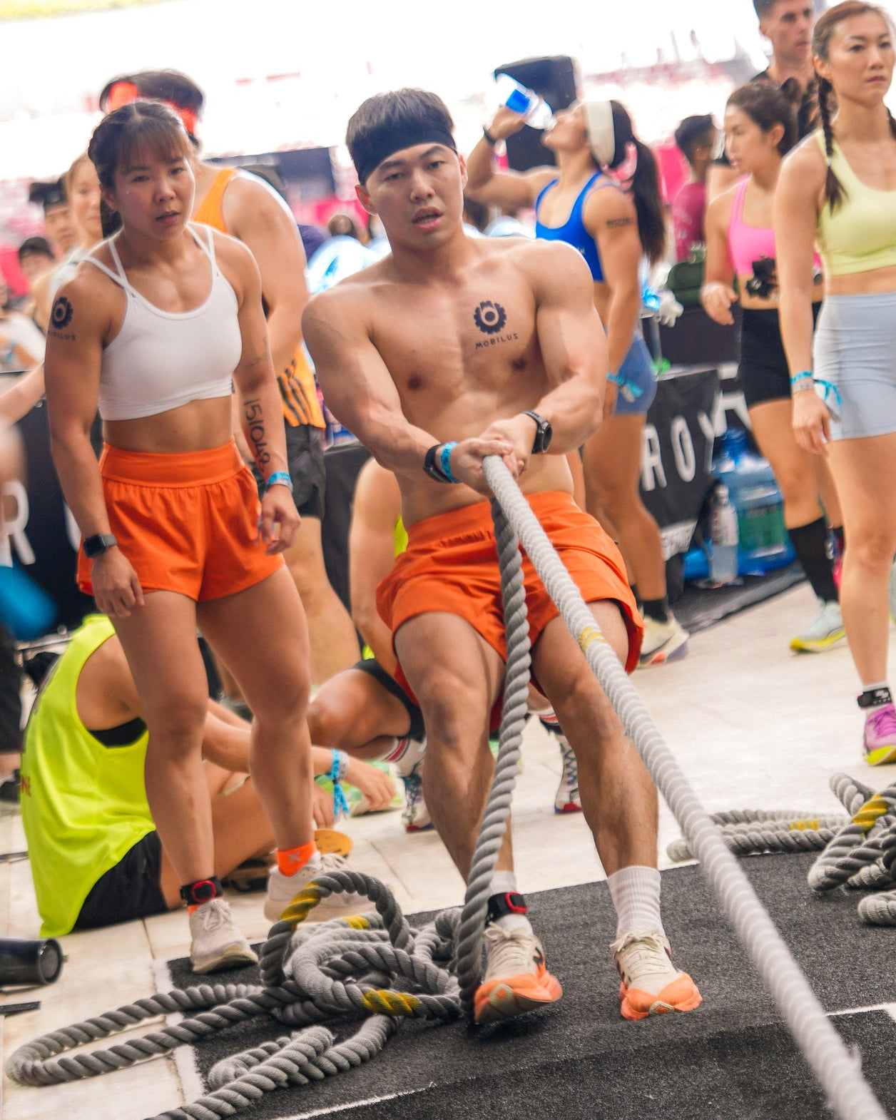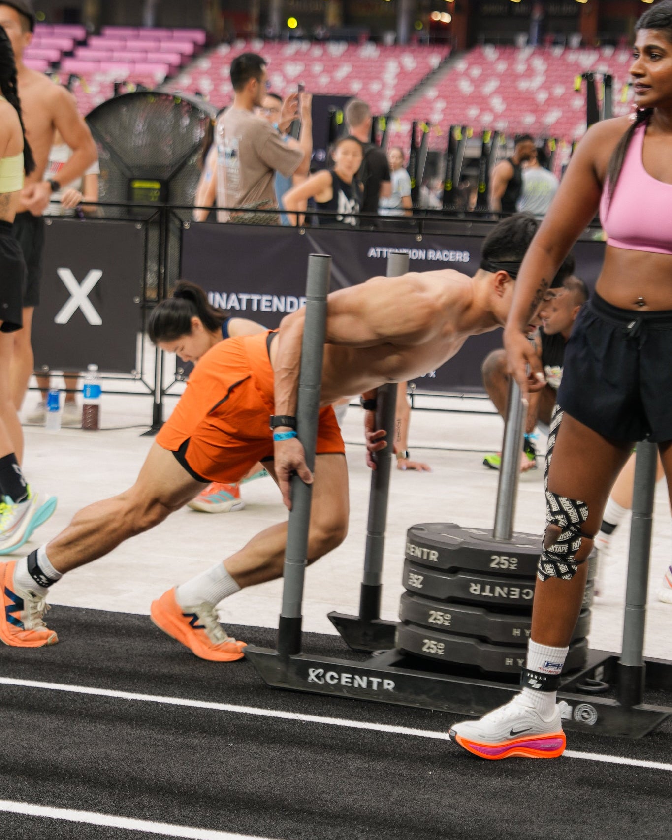 Pei is 168cm and wears Size 8, paired with Freedom 4.0 Plaid Bra in Tiger Lily Orange/Poppyfields (MD)