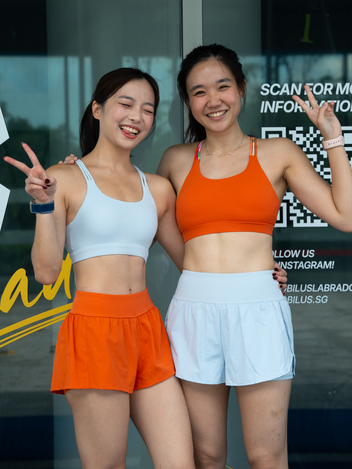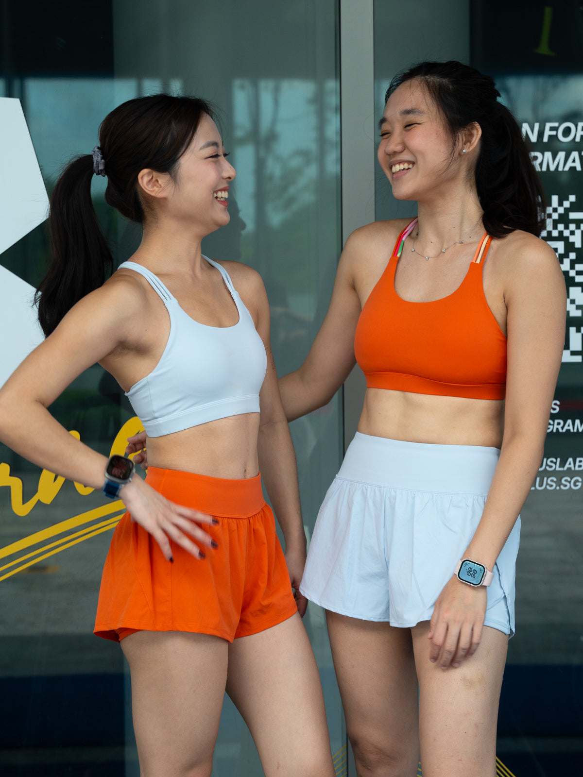 Pei is 168cm and wears Size 8, paired with Swift Strides 2.0 Running Shorts (Tiger Lily Orange)